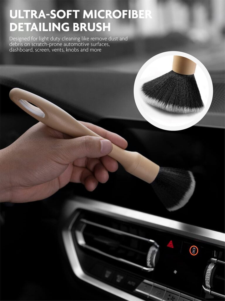 • [ Premium Grade Bristles] The bristles are super soft and gentle and reduce the chance of scratching any of the various soft surfaces found on your vehicle’s interior, including Boars Hair Detailing Brush, Synthetic Fiber Detailing Brush, Ultra Soft Microfiber Detailing Brush