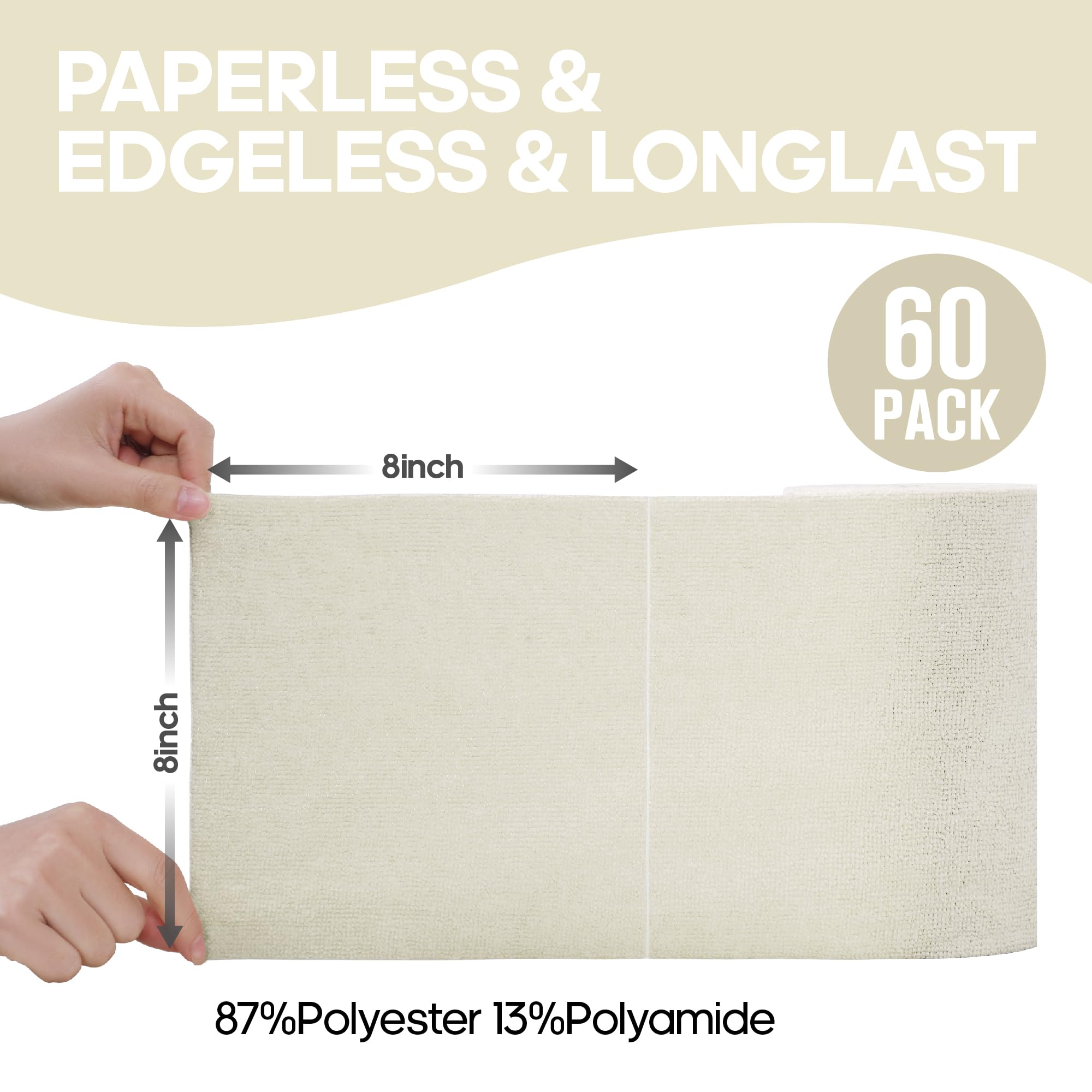 [Quick Tear-Away Rag Reach] Easy to tear off one sheet on a convenient roll of 60-count microfiber cloths, to be accessible on demand for tear and go cleaning