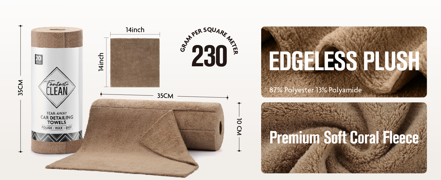 • SPACE-SAVING 20-SHEET TEAR-AWAY CLOTH ROLL: 14×14 inch large sheets effortlessly cover hoods, roofs, and doors. One-hand tear-away design stores flat in trunks or gloveboxes – 70% slimmer than bulky packs. Always ready for muddy paws or roadside spills. It can be machine or hand washed without any special treatment. It provides great convenience for daily use, brings you a hassle-free cleaning experience and helps you save time and energy