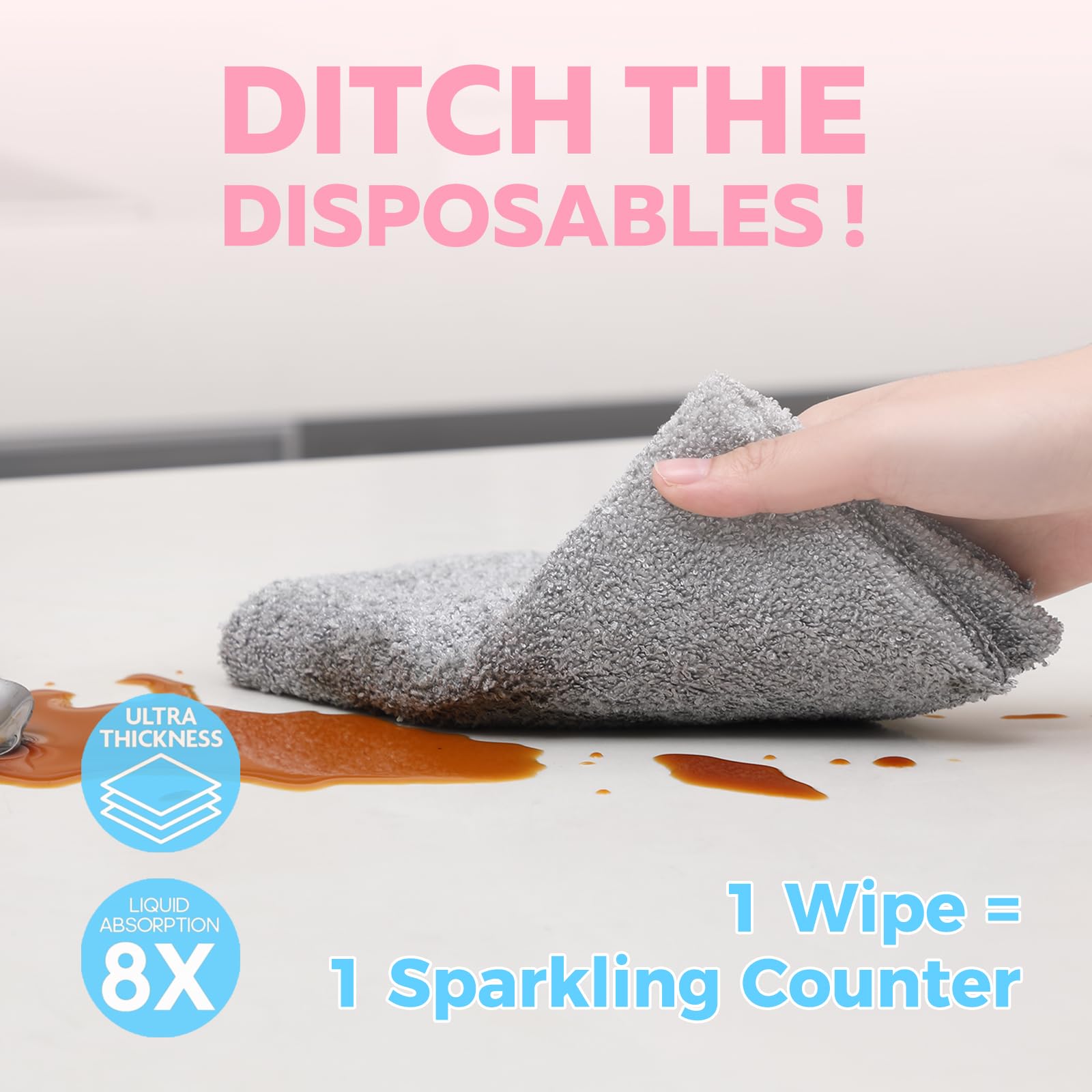 - [Exceptional Absorption] Handle any spill, wet or dry. The cloths can absorb up to 8 times their weight in water, capturing more dirt and drying quicker than conventional towels, while staying odorless