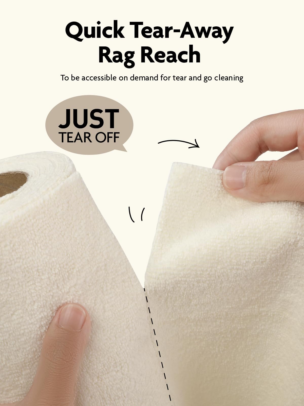 [Quick Tear-Away Rag Reach] Easy to tear off one sheet on a convenient roll of 40-count microfiber cloths, to be accessible on demand for tear and go cleaning