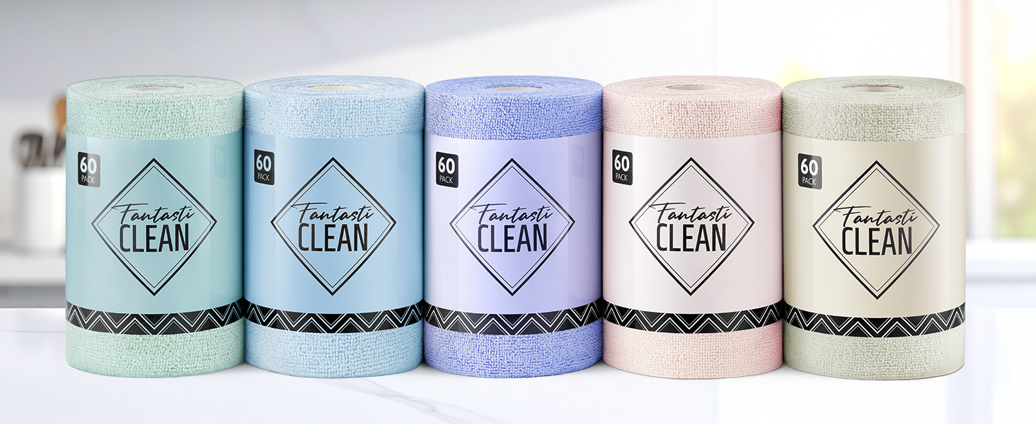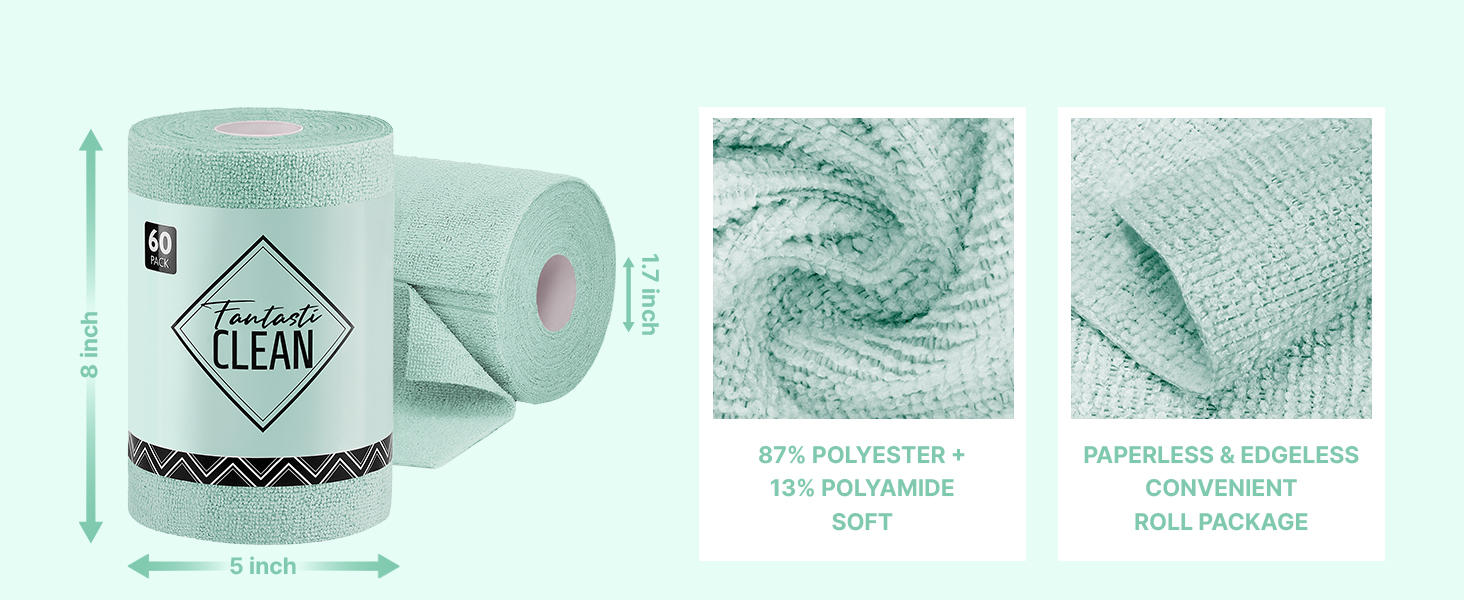 TEAR-AWAY DESIGN & PAPERLESS TOWELS: Our microfiber cleaning cloth adopts a roll design. Each roll contains 60 pack of towel cloth. When in use, it can be quickly tear away, which is convenient and effortless. It can meet all kinds of daily cleaning needs