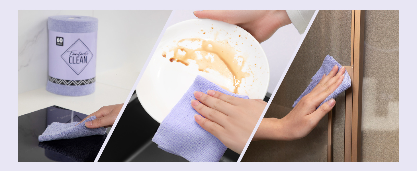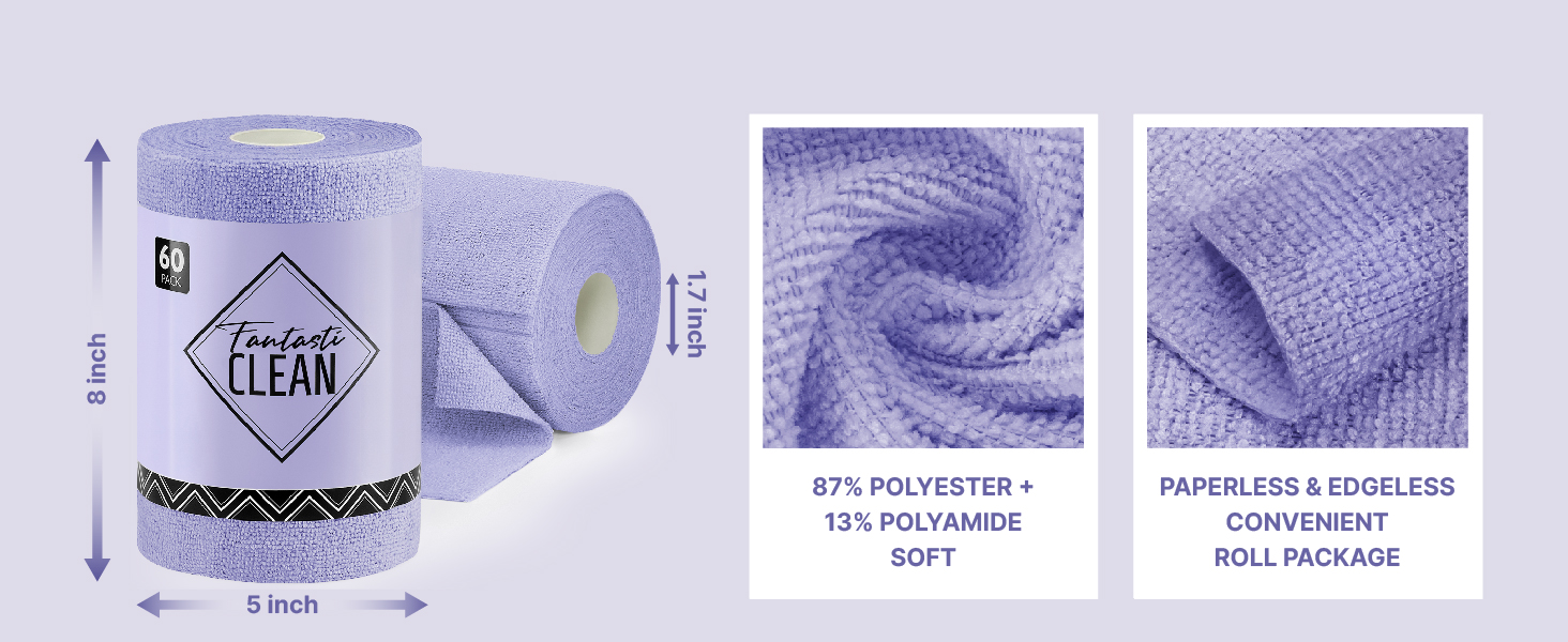 [Quick Tear-Away Rag Reach] Easy to tear off one sheet on a convenient roll of 60-count microfiber cloths, to be accessible on demand for tear and go cleaning