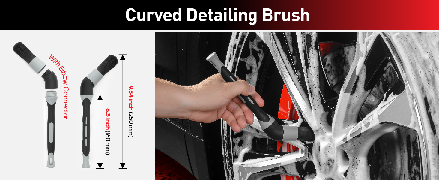 • FLEXIBLE DESIGN & REACH EVERY HIDDEN CORNER: Our Curved Detailing Brush features a elbow connector to access narrow, grime-hiding areas. It easily cleans lug nut holes, deep crevices, and other tight spaces that regular brushes can’t reach. Leave no dirt behind