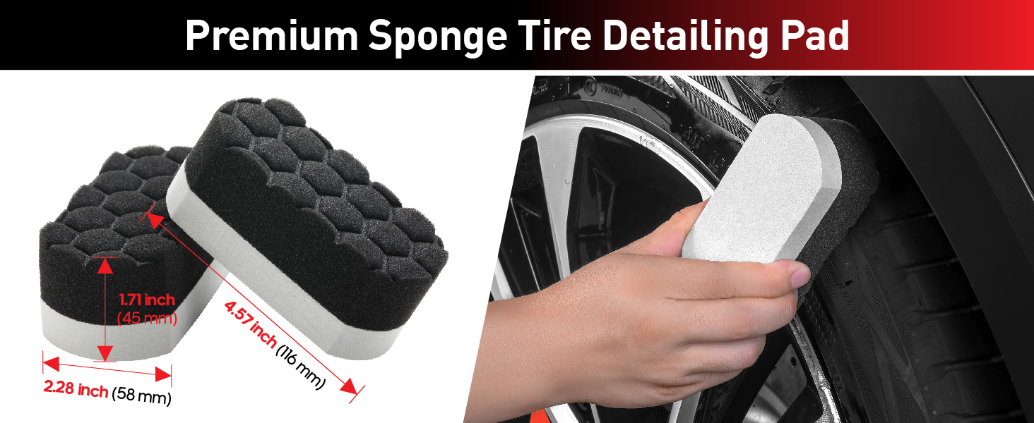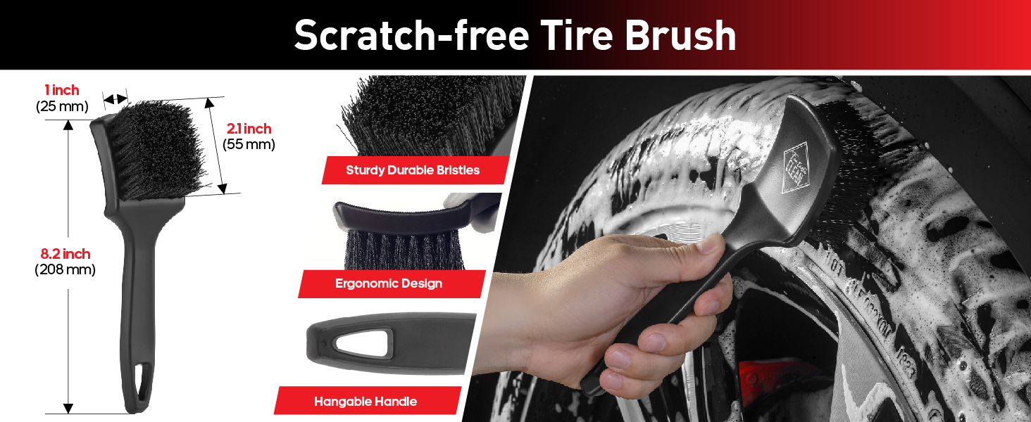 • EFFORTLESS SHINE & STURDY BRISTLES: Our Scratch-Free Tire Brush removes tough grime without scratches, while its ergonomic, hangable handle simplifies use and storage. Achieve a perfect finish with the 2-pack Premium Sponge Detailing Pads, ideal for applying tire dressings or gentle wiping to ensure a deep, lasting shine