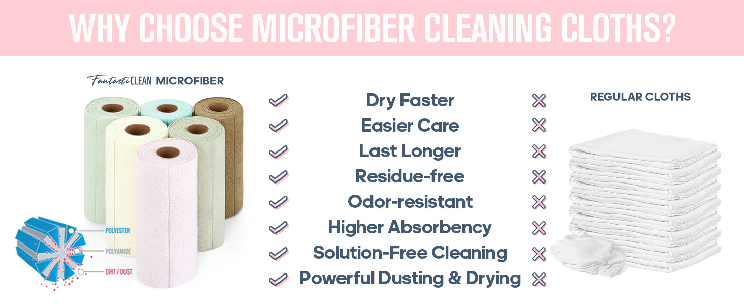 FantastiCLEAN Microfiber makes cleaning around home and auto simple. Easy to tear cloths that absorb spills, wipe down surfaces and remove dust and debris on a convenient roll. The perfect alternative to paper towels that you can only use once and then throw away. Cleaning, picking up spills, basically anything you would use a regular paper towel for.