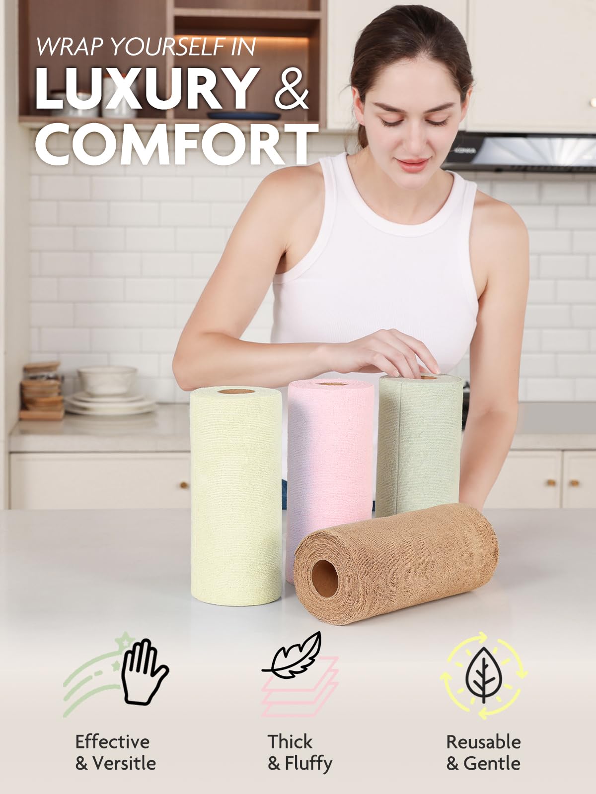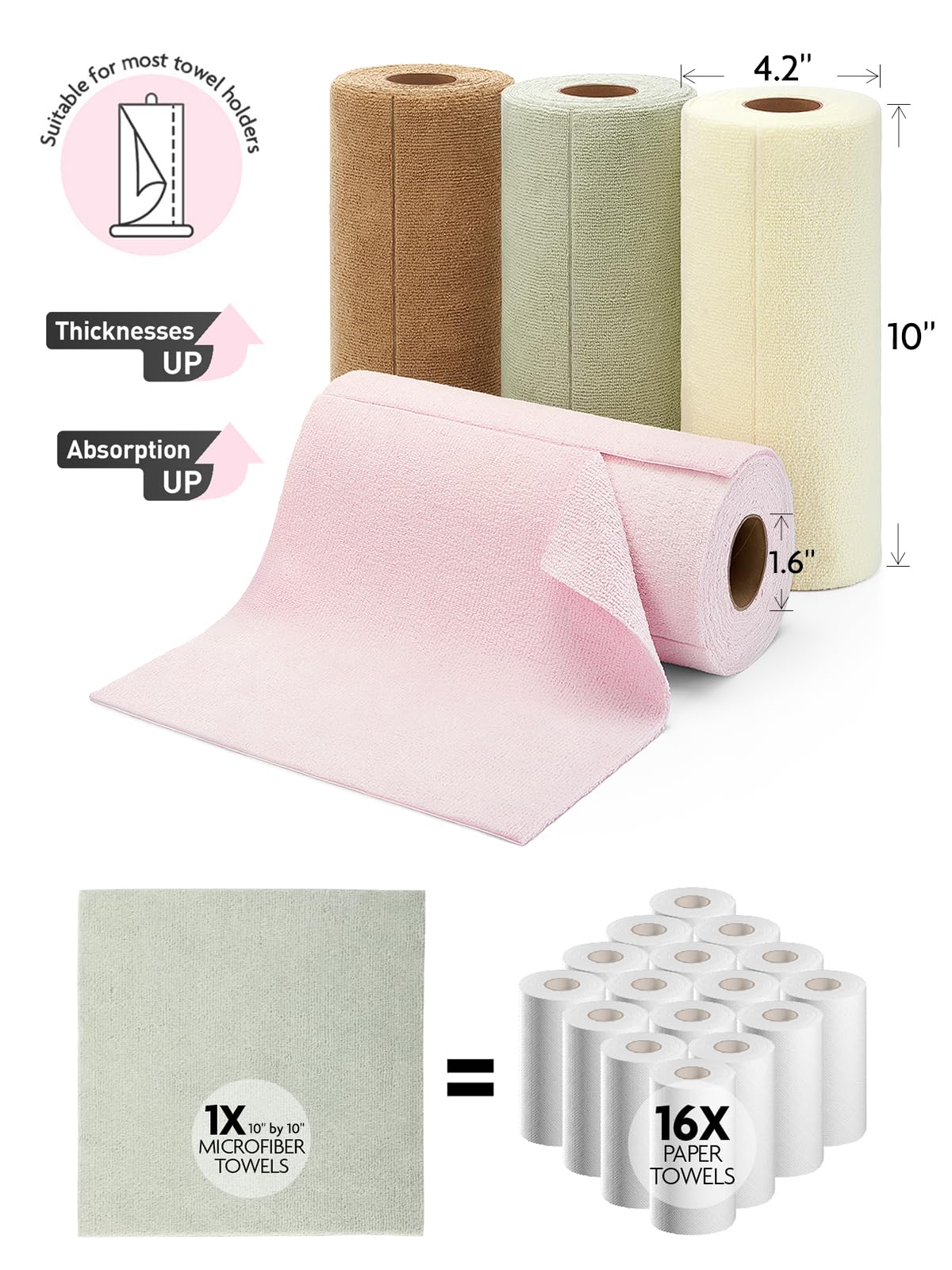 80 Sheets 4 Rolls Tear-Away Microfiber Roll(Pink,Grayish,Beige,Tan)