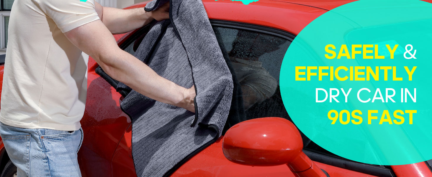 SUPER SOFT & PLUSH MATERIAL: Made with ultra-soft and thick microfiber; The large car drying towel provides a gentle touch while effectively absorbing water without scratching your vehicle’s surface