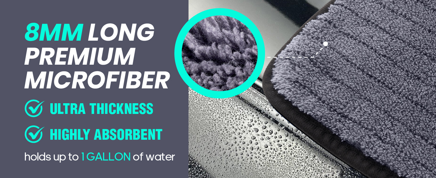 ULTRA ABSORBENT & QUICK DRYING: Features 8mm long microfiber strands for maximum absorbency; Dries a standard car in just 90 seconds, saving you time and effort